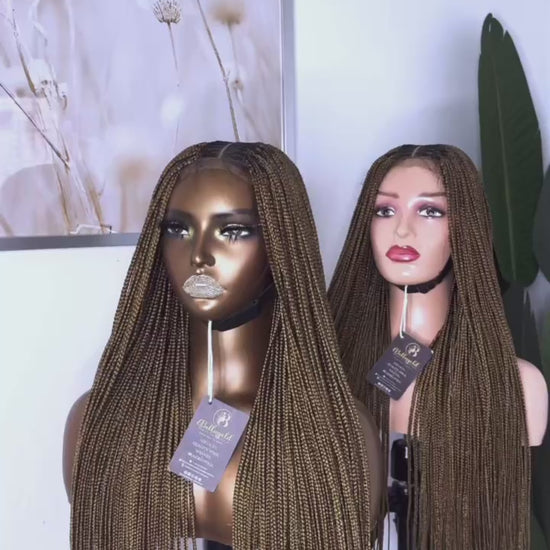 28 wear and go neatly plaited and lightweight braided wigs in color 27/30 mix .
